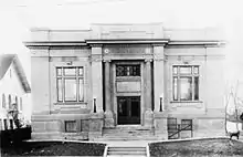 Murray's central location in Salt Lake Valley made it a convenient location for industry. Construction of the Woodhill Brothers' smelter in 1869 initiated Murray's industrial history. In 1870, Murray produced the first silver bars smelted in Utah. In 1899, American Smelting & Refining Company (ASARCO) was organized by combining the Germania and Hanauer smelters. The smelters continued to dominate the local economy until the close of the ASARCO lead smelter in 1949. Business and commercial enterprise prospered along with the smelter industry. Murray's industry would later include a water plant, lighting system, canning factory, flour mills, and brickyards.[17] Many of those employed at the Franklyn and Germania smelters were immigrants from Scandinavian countries who had joined the LDS church in their homeland and moved to Utah; most spoke little English. The Scandinavian population settled in the area west of State Street and was large enough to hold separate LDS services in the Swedish language. (See Murray LDS Second Ward Meetinghouse). The Scandinavians eventually dispersed, and with the exception of their meetinghouse, few ethnic reminders remain in this section of Murray.[18] Joe Hill, the Industrial Workers of the World labor activist came to Murray in 1914 to rally laborers working at the smelters and nearby mines. He was arrested for a double homicide in Salt Lake City while recovering from a gunshot wound at the Murray home of Edward and John Eselius, that was located on 4800 South (then known as 17th South St.) and Plum Street.[19]