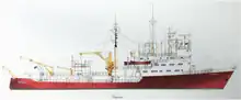 In 1972, the government bought a damaged but younger German freighter, converted its once refrigerated holds into laboratories and scientists’ accommodation, installed a high-resolution seismic sounder/profilers into its hull, and named her Tangaroa (a prior ship than the present Tangaroa).[8] A punch-tape controlled transit satellite navigation system was installed, but position fixes could be many hours apart. She undertook 155 cruises, many to the tropics, until she was damaged in a storm in 1984 and sold for scrap.[3]