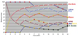 | 6 | 4 | 10 | .286[lower-alpha 2] | 9 | ||