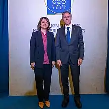 Najla Mohammed El Mangoush (born 7 June 1973) is a Libyan diplomat and lawyer.[1] She was Libya's foreign minister in Abdul Hamid Dbeibeh's government from 15 March 2021[2] until her dismissal on 28 August 2023.[3] El Mangoush is Libya's first female foreign minister,[4] and the fifth woman to hold the position of a foreign minister in the Arab World.