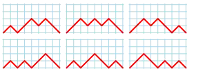 | N(4, 3) = 6 paths with 3 peaks: | ![]() |