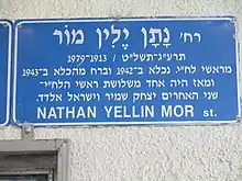 Nathan Yellin-Mor (Hebrew: נתן ילין-מור, Nathan Friedman-Yellin; 28 June 1913 – 18 February 1980) was a Revisionist Zionist activist, Lehi leader and Israeli politician. In later years, he became a leader of the Israeli peace camp, a pacifist who supported negotiations with the Palestine Liberation Organization and concessions in the Israeli-Arab conflict.