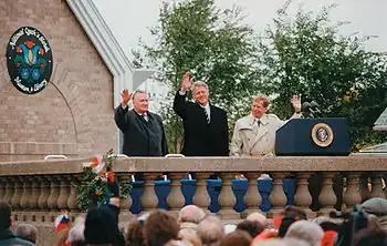 From 1983 onwards, the museum began to employ staff, and during the 1980s gained additional artifacts and financial contributions from Czech and Slovak Americans. The museum adopted its current name during this period. By the 1990s, the museum and library were outgrowing its space, and plans for a new facility began, with an architect creating plans for a new 16,000-square-foot (1,500 m2) building. Fundraising for the new facility began during this time. On October 28, 1993, groundbreaking took place for the new building. On October 21, 1995, the building was dedicated, with U.S. President Bill Clinton, Czech President Václav Havel, and Slovakian President Michal Kováč presiding over the ceremony.[1][2][3] Some 7,000 people attended the dedication event.[4]