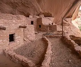 While much of the construction in this site remains similar to common ancestral Pueblo architectural forms, including such features as Kivas, a circular tower (at Keet Seel), and pit-houses, the limited space that this site presented created a much more densely populated living area. At its peak, Keet Seel had more than 150 rooms and 6 kivas, while Betatakin had about 120 rooms and only one kiva.[6]