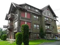 It was designed by architect James H. Nave with Swiss Chalet/Swiss Chalet Revival styling, with Nave possibly influenced by Spokane, Washington architect K.K. Cutter. It has also been known as Wilson Apartments.[2]