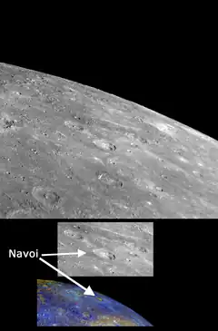 - ↑ "Navoi: An Uncommon Crater Named for the Uzbek Poet". Messenger. Archived from the original on 3 March 2016. Retrieved 21 September 2012.