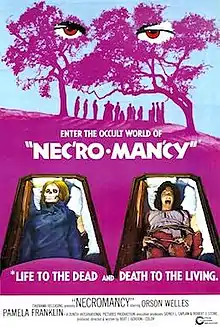 Necromancy (stylized as NEC'RO•MAN'CY) is a 1972 American supernatural horror film directed by Bert I. Gordon and starring Orson Welles, Pamela Franklin, Michael Ontkean, and Lee Purcell. The plot follows an enigmatic cult leader in a small California town who attempts to harness the powers of a local woman to resurrect his dead son.