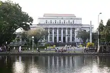 The works of National Artist for Sculpture Guillermo Tolentino are displayed in the capitol building and the lagoon fronting the building.[7]