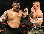 The main rivalry heading into New Year's Revolution was between John Cena and Umaga over the WWE Championship. The rivalry all began on the November 6 episode of Raw, one of WWE's main television programs, when Cena interfered in Umaga's match while accepting a challenge to a match by Kevin Federline.[5][6] One week later, Jonathan Coachman, an on-screen authority figure of Raw, a portrayed match maker and rules enforcer, announced that a match between Cena and Umaga would take place, which ended in a no-contest due to interference.[7][8] Three weeks later on the November 27 edition of Raw, Umaga (through Armando Alejandro Estrada) issued a challenge to Cena for the WWE Championship, which Cena accepted.[9][10] The following week, Cena was assaulted by Umaga after his match, and both were confronted by security. Afterwards, neither of them could touch each other outside of a match until New Year's Revolution.[11][12] On the December 18 edition of Raw, Cena, along with D-Generation X, (Triple H and Shawn Michaels) faced off against Umaga and Rated-RKO (Edge and Randy Orton). The match ended in a no-contest after Cena and Umaga started brawling to the backstage area.[13][14] Two weeks later on the January 1 edition of Raw, Cena faced off against Federline in a No Disqualification match, a match where there is no rules and the only way to win is by pinfall or submission. During the match, Umaga came to the ring and hit Cena with the WWE championship belt, which allowed Federline to pin Cena for the win. This led to a 4-on-1 handicap match later that night between Johnny Nitro, Johnathan Coachman, Umaga, and Estrada and Cena, where Cena attacked Umaga with a folding chair, causing the disqualification.[15][16]