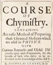 Lemery did not concern himself much with theoretical speculations, but holding chemistry to be a demonstrative science, confined himself to the straightforward exposition of facts and experiments. In consequence, his lecture-room was thronged with people of all sorts, anxious to hear a man who shunned the barren obscurities of the alchemists, and did not regard the quest of the philosopher's stone and the elixir of life as the sole end of his science. Of his Cours de chymie (1675) he lived to see 13 editions, and for a century it maintained its reputation as a standard work.[1]