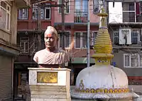 A bust of Bajracharya was erected at his birthplace Om Bahal, Kathmandu on 23 November 1998 by Olympus Club (Nisthananda Memorial Trust).[11] A street in central Kathmandu was named Nisthananda Marg in his honor by Kathmandu Metropolitan City.[12]