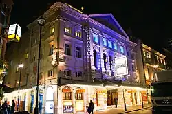 The Noël Coward Theatre, formerly known as the Albery Theatre, is a West End theatre in St. Martin's Lane in the City of Westminster, London. It opened on 12 March 1903 as the New Theatre and was built by Sir Charles Wyndham behind Wyndham's Theatre which was completed in 1899. The building was designed by the architect W. G. R. Sprague with an exterior in the classical style and an interior in the Rococo style.