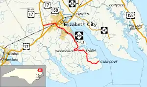 North Carolina Highway 344 (NC 344) is a primary state highway in the U.S. state of North Carolina. It serves to connect Elizabeth City with communities in southern Pasquotank County.