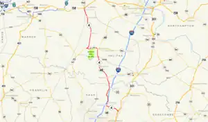 As North Carolina renumbered its state highways in 1934, NC 4 was commissioned as a short state highway, running only a few miles from US 158 to the community of Airlie, just south of Littleton.[3] When NC 48 running from Airlie to Littleton is rerouted to the east in 1951, NC 4 was left to take its place. In 1984 NC 4 was extended southward, taking over parts of NC 561, NC 48, and the decommissioned I-95 Business to US 301. I-95 Business was intended to take traffic from US 301 to I-95, and NC 4 took over that role.[2]