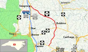 North Carolina Highway 705 (NC 705) is a primary state highway in the U.S. state of North Carolina. The route is marked as the Pottery Highway or Pottery Road and as a North Carolina Scenic Byway[2] due to the large number of potters in and surrounding Seagrove.