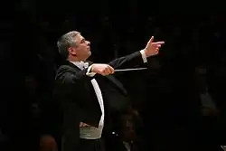 Since July 2004, Grant Llewellyn has been the orchestra's music director. His initial contract was for 4 years, and in November 2006, his contract was extended to 2012.[1] In 2013, Llewellyn's contract was extended through 2018. Llewellyn stepped down as music director during the pandemic-curtailed 2019-20 season but retains the title of Music Director Laureate. In June 2021, the orchestra announced that Mexican conductor Carlos Miguel Prieto will serve as Artistic Advisor for the orchestra's 2021-22 season. On February 23, 2022, the NCS announced the appointment of Prieto as its next Music Director. His initial four-year term as Music Director begins with the 2023-2024 season, and he will serve as Music Director Designate during the 2022-2023 season.