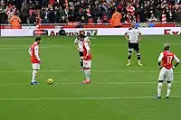 ![]() Gilberto Silva (far left) and Ledley King (far right), captaining Arsenal and Tottenham respectively at White Hart Lane, on 21 April 2007. The match ended in a 2–2 draw. | |