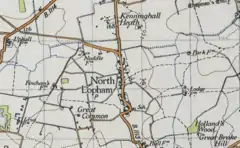 North Lopham was first mentioned in the Little Doomsday Book of 1086 and was referred to as 'Lopham Alia'.[4] This Latin name can be translated into 'Another Lopham'. The name Lopham originates from the Old English for 'Loppa's homestead'. The earliest known building within the parish was a Roman villa located in the East of the village. This was discovered through Roman materials, such as pottery, and coins being found as a result of ploughing and metal detecting.[5] During the 16th century, North Lopham was noted for the production of fine linen, as was common in the areas surrounding Thetford and Diss at the time.[6] This production continued through the 17th and 18th centuries as was described by William White's 1845 Gazetteer: