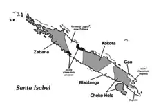 Basic vocabulary in many Northwest Solomonic languages is aberrant, and many forms do not have Proto-Oceanic cognates.[4] Below, Ririo, Zabana, and Maringe are compared with two Southeast Solomonic languages. Aberrant forms are in bold.