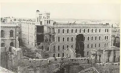 At the end of the war despite the damaged building, the Israeli army stayed put since they did not want to lose such a strategic position, and a small community of Assumptionists continued to live next to the main chapel. Many local refugees took refuge in the north wing and adjacent buildings, and the south wing was mostly destroyed and completely uninhabitable.[10]