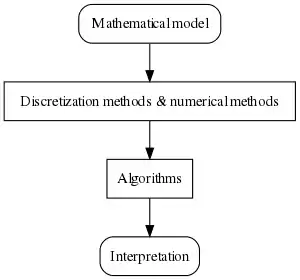 - Discretization methods and numerical methods convert those governing equations in the mathematical models to discrete equations.[2] These discrete equations can approximate the solution of the governing equations.[2] Common methods include the finite element, finite difference, or finite volume method that subdivide the object of interest into smaller pieces (element) by mesh. These discrete equations can then be solved in each element numerically.[2] The discrete element method uses another approach, this method reassembling the object of interest from numerous tiny particles. Simple governing equations are then applied to the interactions between particles.