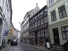 The other property (No. 3, now Nybrogade 4) did not continue all the way through the block to Snaregade, leaving No. 3 as an L-shaped property (cf. the map detail from Christian Gedde's 1757 map of Snaren's Quarter). The Snaregade portion of the property was from 1833 the site of a 15-bays-long half-timbered building (shortened with six bays in 1845, cf. below). The building in Nybrogade was constructed with two storeys some time between 1762 and 1784.[2][3]