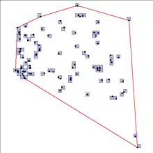 The definition of range is further confounded by how the total realized range size is measured. There are two types of measurements commonly in use, the extent of occurrence (EOO) (For definition: see ALA and Fig.1[6]) and the area of occupancy (AOO) (see also the Scaling pattern of occupancy, and for a definition, see Fig. 2 and ALA[6]). The EOO can best be thought of as the minimum convex polygon encompassing all known normal occurrences of a particular species and is the measure of range most commonly found in field guides. The AOO is the subset of the EOO where the species actually occurs. In essence, the AOO acknowledges that there are holes in the distribution of a species within its EOO, and attempts to correct for these vacancies. A common way to describe the AOO of a species is to divide the study region into a matrix of cells and record if the species is present in or absent from each cell. For example, in describing O–A relationships for common British birds, Quinn et al.[7] found that the occupancy at the finest resolution (10 x 10 km squares) best explained abundance patterns. In a similar manner, Zuckerberg et al.[8] used Breeding Bird Atlas data measured on cells 5 × 5 km to describe breeding bird occupancy in New York State. IUCN typically uses a cell size of 2 × 2 km in calculating AOO.[6]