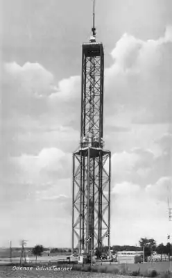 The tower, 175 metres (581 ft) tall,[1] was built in 1934-1935 using spare materials from the construction of the first Little Belt Bridge and opened on 29 May 1935. The tower quickly became a symbol and source of pride of both Odense and the entire island of Funen. Visitors said they could see the entire island from its observation platforms. If this statement is true, it was possible to see more than 50 kilometres (31 mi) away.