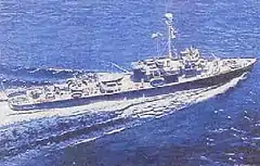 - ↑ Sunk by kamikaze 22 April