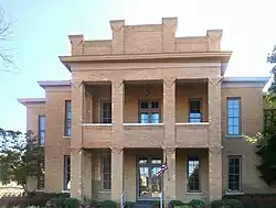 It was the first seat of government in Morris County, Texas, which was split from an adjacent county in 1875. It is a copy of the courthouse of Franklin County, Texas.[2]