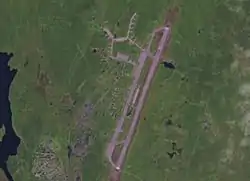 Olenya (also Olenegorsk) has been a major Russian Navy reconnaissance base, located on the Kola Peninsula 92 km south of Murmansk. As of 2020, units at the base are subordinate to the Long-Range Aviation branch of the Russian Aerospace Forces.[1] The base and its staff settlement (Vysoky, Murmansk Oblast), across Lake Permusozero from the city of Olenegorsk, are served by the Olenegorsk rail station (formerly Olenya station). Olenya has served as the headquarters for 5 MRAD (Naval Reconnaissance Air Division), and has hosted two reconnaissance regiments. Its 3500-meter runway is the longest on the Kola Peninsula, making it a key facility for intercontinental flights across the North Atlantic basin.