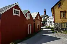 The historic village of Ona covers most of the tiny island of Ona. The highest point on Ona, the Onakalven cliff, is the site of the Ona Lighthouse, which was built in 1867. The lighthouse and the tiny island itself has become a well known tourist spot in Western Norway. It has a ferry connection with the other islands in Sandøy and to the island of Gossa in Aukra Municipality.[1]