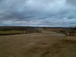 - ↑ This demarcation line is visible on the highway as a change in pavement quality and the use of different high-mast lighting