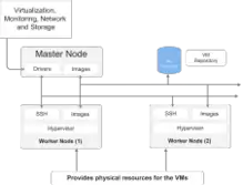 The worker nodes, or hypervisor enabled-hosts, provide the actual computing resources needed for processing all jobs submitted by the master node. OpenNebula hypervisor enabled-hosts use a virtualization hypervisor such as Vmware, Xen, or KVM. The KVM hypervisor is natively supported and used by default. Virtualization hosts are the physical machines that run the virtual machines and various platforms can be used with OpenNebula. A Virtualization Subsystem interacts with these hosts to take the actions needed by the master node.