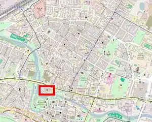 Opera Nova building is located in a bend of the Brda river between Old Town and Downtown Bydgoszcz. The opera House is connected with a footbridge over the Brda river to Mill Island (Polish: Wyspa Młyńska): from the surrounding terrace it overlooks Bydgoszcz Cathedral, and Mill Island's granaries and mills.