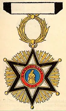 The Cross of Epidemics was established by royal order of August 15, 1838, and the Civil Order of Beneficence was created by royal decree of May 17, 1856. Both honorary distinctions were merged by royal decree of the Ministry of the Interior on July 29, 1910, remaining under the name of the Civil Order of Beneficence.[1] Its purpose was to reward relevant services and merits of a sanitary nature, or those rendered due to assistance in sanitary struggles or epidemics.[2][3][4][5][6]
