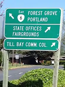 Oregon Route 6 is a state highway in the U.S. state of Oregon that runs between the city of Tillamook on the Oregon Coast, to the Willamette Valley, near Banks. OR 6 traverses the Wilson River Highway No. 37 of the Oregon state highway system,[2] named after the river paralleling the highway's western segment.