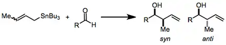 Organostannane addition to carbonyl groups constitutes one of the most common and efficient methods for the construction of contiguous, oxygen-containing stereocenters in organic molecules. As many molecules containing this motif—polypropionates and polyacetates, for instance—are desired by natural products chemists, the title reaction has become important synthetically and has been heavily studied over the years.[2][3] Substituted allylstannanes may create one or two new stereocenters, often with a very high degree of stereocontrol.