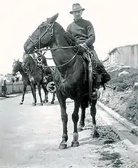 The earliest known Falklands settler was Carmelita Penny (Simon) who had arrived as a slave after 1826.[15] Her sons José Simon, Manuel Coronel Jr. and Richard Penny Jr. were all native Falkland Islanders (born in 1831, 1834 and 1837 respectively), whose fathers had been resident in the islands since before 1833. Among the prominent early Falkland Islanders of Buenos Ayrean origins were the gaucho Manuel Coronel Sr., Santiago Lopez (Darwin's 'St Jago'), German-born Charles Kussler, Antonina Roxa, and another slave Gregoria Madrid. Most popular among them was Antonina Roxa whose hard work in several occupations (she was a skillful gaucho, and worked as such at Hope Place – Saladero) made her the owner of a 6,000-acre (24 km2) farm and valuable real estate in Stanley.[13][16] The South American contribution to the Falklander ethnogenesis is further recorded by Commodore Augusto Lasserre of the Argentine Navy, who traveled extensively around the islands; according to his account there were up to 20 Argentine-born Islanders in 1869, "working either as labourers or foremen in the ranches, because in this kind of work they are better than the majority of the foreigners".[11][17]