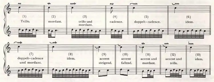In the late 18th and early 19th century, there were no standard ways of performing ornaments and sometimes several distinct ornaments might be performed in a same way.[14]