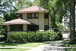 The Orth House is a historic house located at 42 Abbotsford Road in Winnetka, Illinois. Walter Burley Griffin designed the Prairie School house, which was built in 1908. Griffin was a student of Frank Lloyd Wright, and he designed the Orth House shortly after starting his own studio; the house resembles Wright's work more closely than Griffin's later work. The 1+1⁄2-story house's design features a stucco exterior with decorative stained wood, casement windows divided into geometric patterns, and an overall horizontal emphasis, all characteristic features of the Prairie School.[2]