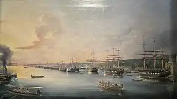 The Serbian revolution (1804–1815) marked the beginning of an era of national awakening in the Balkans during the Eastern Question. In 1811, the fundamentalist Wahhabis of Arabia, led by the al-Saud family, revolted against the Ottomans. Unable to defeat the Wahhabi rebels, the Sublime Porte had Muhammad Ali Pasha of Kavala, the vali (governor) of the Eyalet of Egypt, tasked with retaking Arabia, which ended with the destruction of the Emirate of Diriyah in 1818. The suzerainty of Serbia as a hereditary monarchy under its own dynasty was acknowledged de jure in 1830.[114][115] In 1821, the Greeks declared war on the Sultan. A rebellion that originated in Moldavia as a diversion was followed by the main revolution in the Peloponnese, which, along with the northern part of the Gulf of Corinth, became the first parts of the Ottoman Empire to achieve independence (in 1829). In 1830, the French invaded the Deylik of Algiers. The campaign that took 21 days, resulted in over 5,000 Algerian military casualties,[116] and about 2,600 French ones.[116][117] Before the French invasion the total population of Algeria was most likely between 3,000,000 and 5,000,000.[118] By 1873, the population of Algeria (excluding several hundred thousand newly arrived French settlers) decreased to a drastic 2,172,000.[119] In 1831, Muhammad Ali of Egypt revolted against Sultan Mahmud II due to the latter's refusal to grant him the governorships of Greater Syria and Crete, which the Sultan had promised him in exchange for sending military assistance to put down the Greek revolt (1821–1829) that ultimately ended with the formal independence of Greece in 1830. It was a costly enterprise for Muhammad Ali, who had lost his fleet at the Battle of Navarino in 1827. Thus began the first Egyptian–Ottoman War (1831–1833), during which the French-trained army of Muhammad Ali, under the command of his son Ibrahim Pasha, defeated the Ottoman Army as it marched into Anatolia, reaching the city of Kütahya within 320 km (200 mi) of the capital, Constantinople.[120]: 95 In desperation, Sultan Mahmud II appealed to the empire's traditional arch-rival Russia for help, asking Emperor Nicholas I to send an expeditionary force to assist him.[120]: 96 In return for signing the Treaty of Hünkâr İskelesi, the Russians sent the expeditionary force which deterred Ibrahim Pasha from marching any further towards Constantinople.[120]: 96 Under the terms of the Convention of Kütahya, signed on 5 May 1833, Muhammad Ali agreed to abandon his campaign against the Sultan, in exchange for which he was made the vali (governor) of the vilayets (provinces) of Crete, Aleppo, Tripoli, Damascus and Sidon (the latter four comprising modern Syria and Lebanon), and given the right to collect taxes in Adana.[120]: 96 Had it not been for the Russian intervention, Sultan Mahmud II could have faced the risk of being overthrown and Muhammad Ali could have even become the new Sultan. These events marked the beginning of a recurring pattern where the Sublime Porte needed the help of foreign powers to protect itself.[120]: 95–96