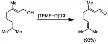 Oxoammonium-catalyzed oxidation reactions involve the conversion of organic substrates to more highly oxidized materials through the action of an N-oxoammonium species. Nitroxides may also be used in catalytic amounts in the presence of a stoichiometric amount of a terminal oxidant.[1] Nitroxide radical species used are either 2,2,6,6-tetramethylpiperidine-1-oxyl (TEMPO) or derivatives thereof.
