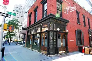 P. J. Clarke's is a saloon, established 1884. It occupies a building located at 915 Third Avenue on the northwest corner of East 55th Street in Manhattan. It has a second location at 44 West 63rd Street on the southeast corner of Columbus Avenue.[1]