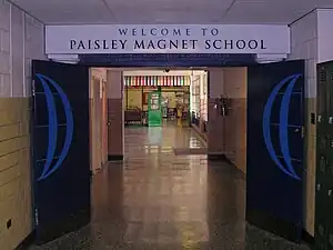 John W. Paisley Magnet School is a Middle school/High school located in Winston-Salem, North Carolina. It is home to the International Baccalaureate Middle Years program for students in grades six through ten. Paisley is a part of the Winston-Salem/Forsyth County Schools system. In 2007, Paisley was recognized as a Magnet School of excellence; one of five in North Carolina and only fifty in the United States. Paisley has been an accredited IB/MYP school since 2004.[1] Marion Pittman-Couch was principal during Paisley's process to become recognized by the IBO and retired in 2007. Paisley Magnet School is currently searching for a new principal. Paisley houses more than 800 students from Forsyth County and the region. Students must complete a magnet school application for admission to Paisley if they are not a resident in Paisley's home school zone. The eleventh and twelfth grade IB Diploma Programme is housed at Parkland High School. The IB Primary Years Programme begins at Speas Elementary School for grades K–5.