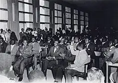 Constructed in 1956 based on Marcel Lambrichs' design, the palais was initially conceived as the residence for the colonial Governor-General.[4][5] After the Congolese independence from Belgium in 1960, the Palais metamorphosed into a symbol of the new state. The official proceedings commemorating the nation's newfound autonomy, including King Baudouin's Proclamation, declaring the Congo's independence and Patrice Lumumba's speech denouncing colonialism, took place in the palais on June 30.[6][7][8] After the nation's independence, the residence briefly served as the seat of the Congolese parliamentary body, which now convenes in the Palais du Peuple.[9][8]