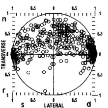 - ↑ Angelier, J. and Mechler, P. 1977. Sur une methode graphique de recherche des contraintes principles egalement utilisable en tectonique et en seismologie: la methode des diedres droits. Bull. Soc. geol. Fr. 19, 1309-1318.