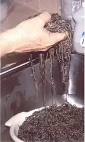 Some Indigenous populations in regions where palolo occur deem the worm a delicacy.[14] During their short-lived annual appearance in the last quarter of the moon in October and November or in February (Lombok, Indonesia),[4] [15] worms are gathered with nets or buckets, and are either eaten raw or cooked in several different ways.