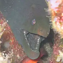 The panamic green moray eel (Gymnothorax castaneus) is a large moray eel in the Pacific.[2] Common names also include chestnut moray eel.