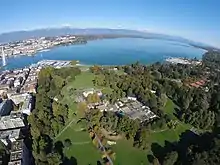 The city park is located south of Lake Geneva at the Quai Gustave-Ador in Geneva. It has a surface of 200,000 m2 and hosts very old and tall trees, Geneva's biggest rose garden, orangeries, an alpine garden and an 18th-century villa. Also two theaters, a playground as well as a paddling pool for the children are found there.